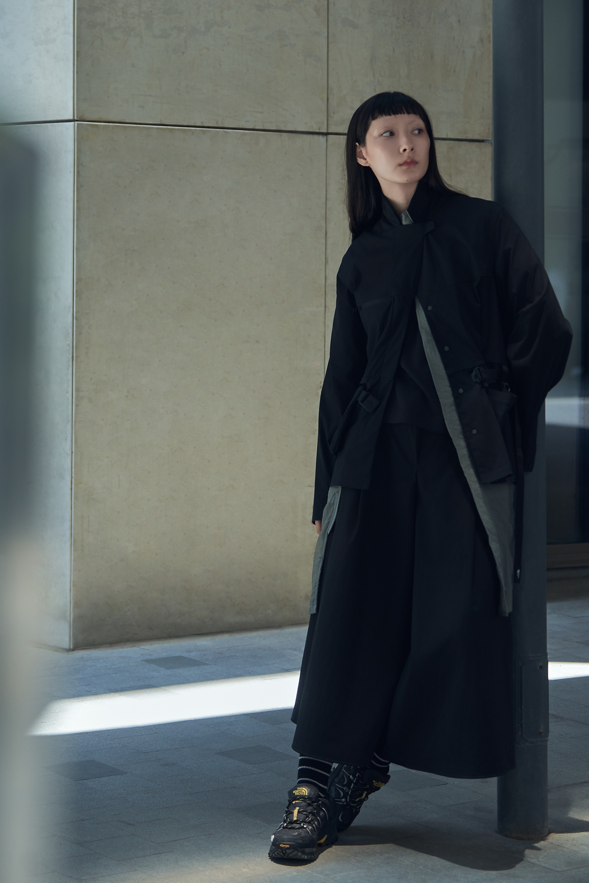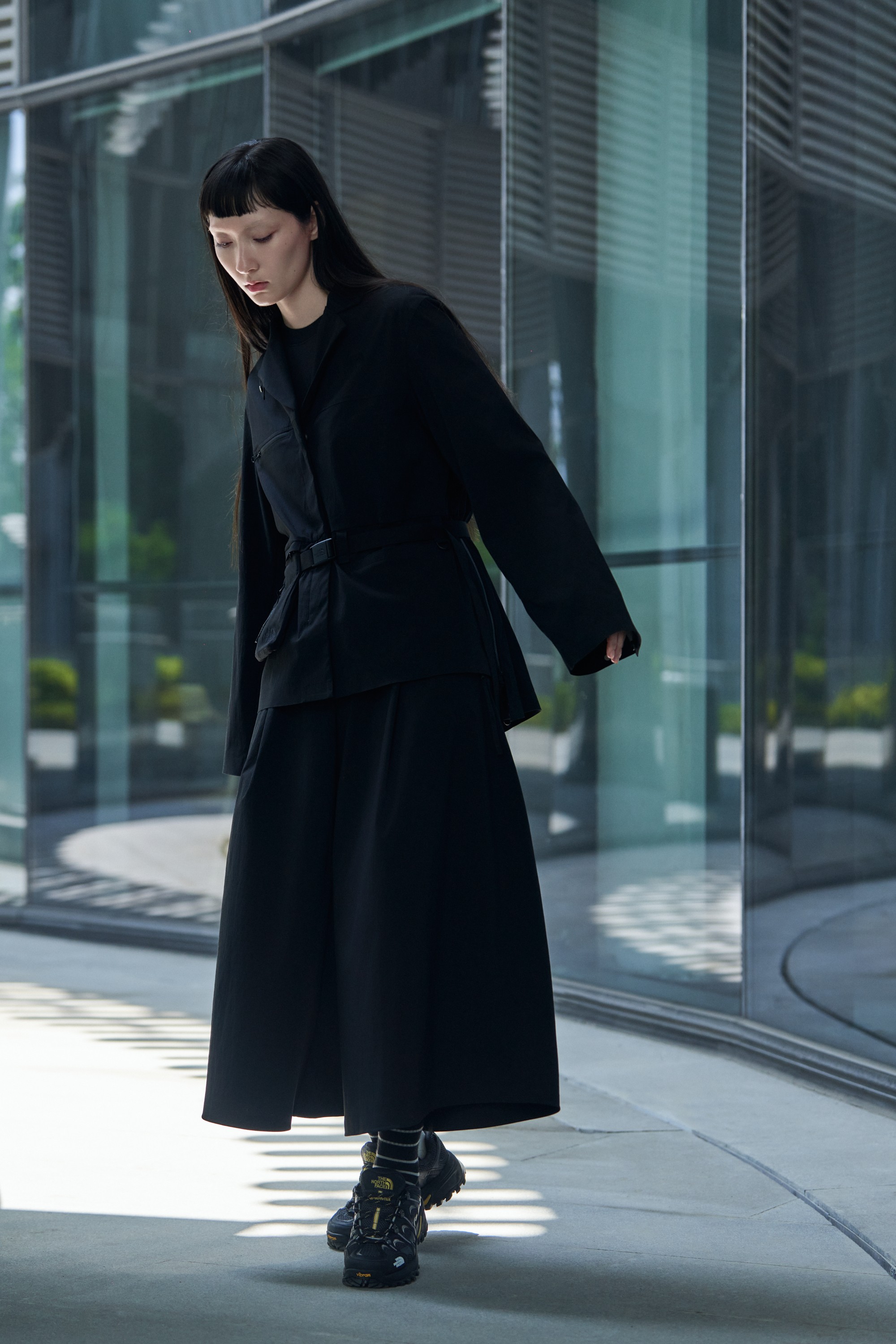 跨越繁复,破风前行,释放深藏于心的探索欲望。穿梭间,防风性能加注机能型格,自在掌控多元挑战。以纯黑装扮,融入都市脉络,悄然寻觅未知领域。男士防风夹克,采用Spectra® [1]纤维混纺面料,集轻量、抗撕裂、持久耐用等特点于一体。结合DWR[2]防泼水、WindWall™ [3]防风及UPF50+防晒防护等多重性能,搭配同款面料长裤,刷新探索认知,提供全方位的保护与舒适;女士户外风格西装外套,延续品牌经典冲锋衣的切线剪裁,自然贴合身形,搭载DWR防泼水处理,将现代美学与户外功能巧妙融合,塑造全新都市灵感造型;女士速干短袖,使用轻薄的双面针织,配合FlashDry™[4]面料,强效吸湿排汗;搭配女士黑色长裙裤,伞状裙摆极具利落廓形,从容舒展随性优雅的探索风格,尽显游弋探索风姿。