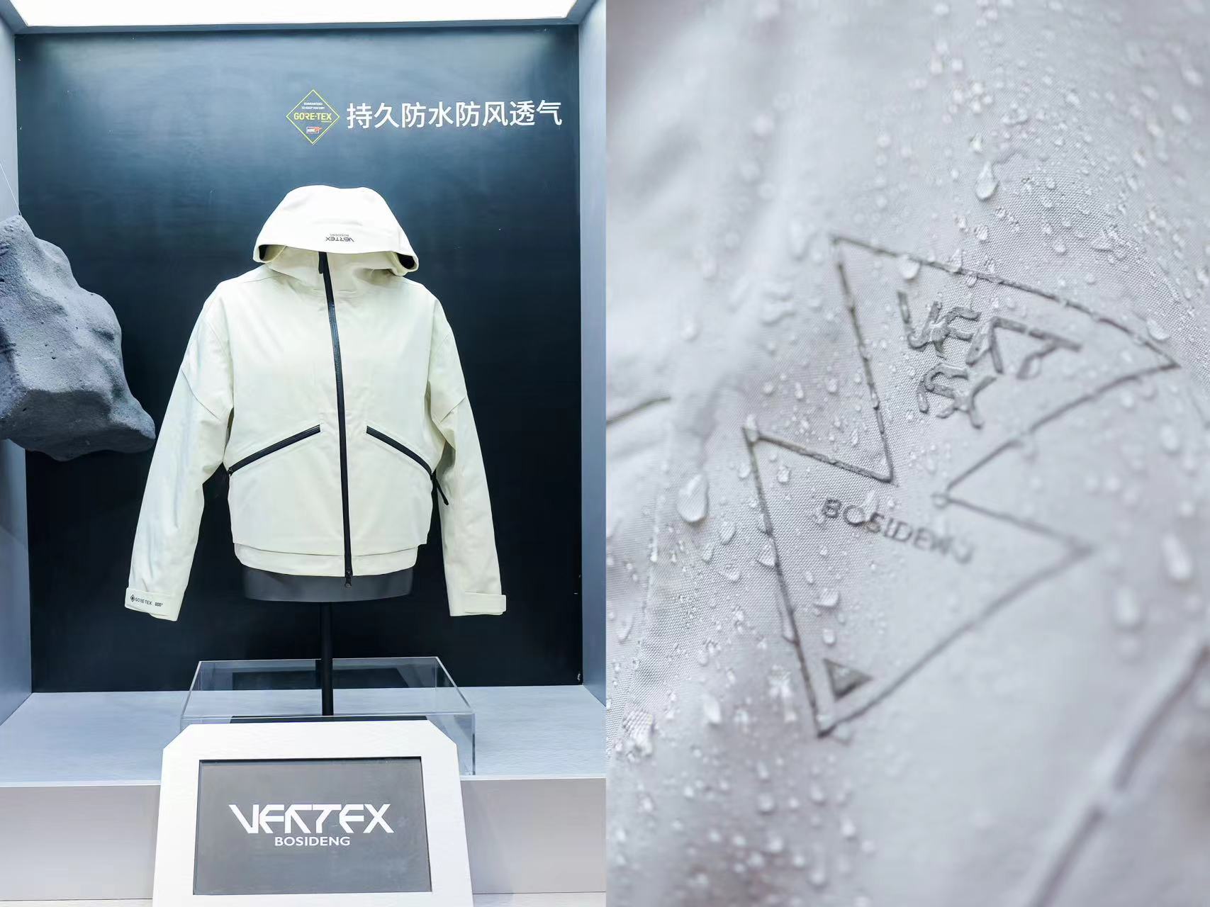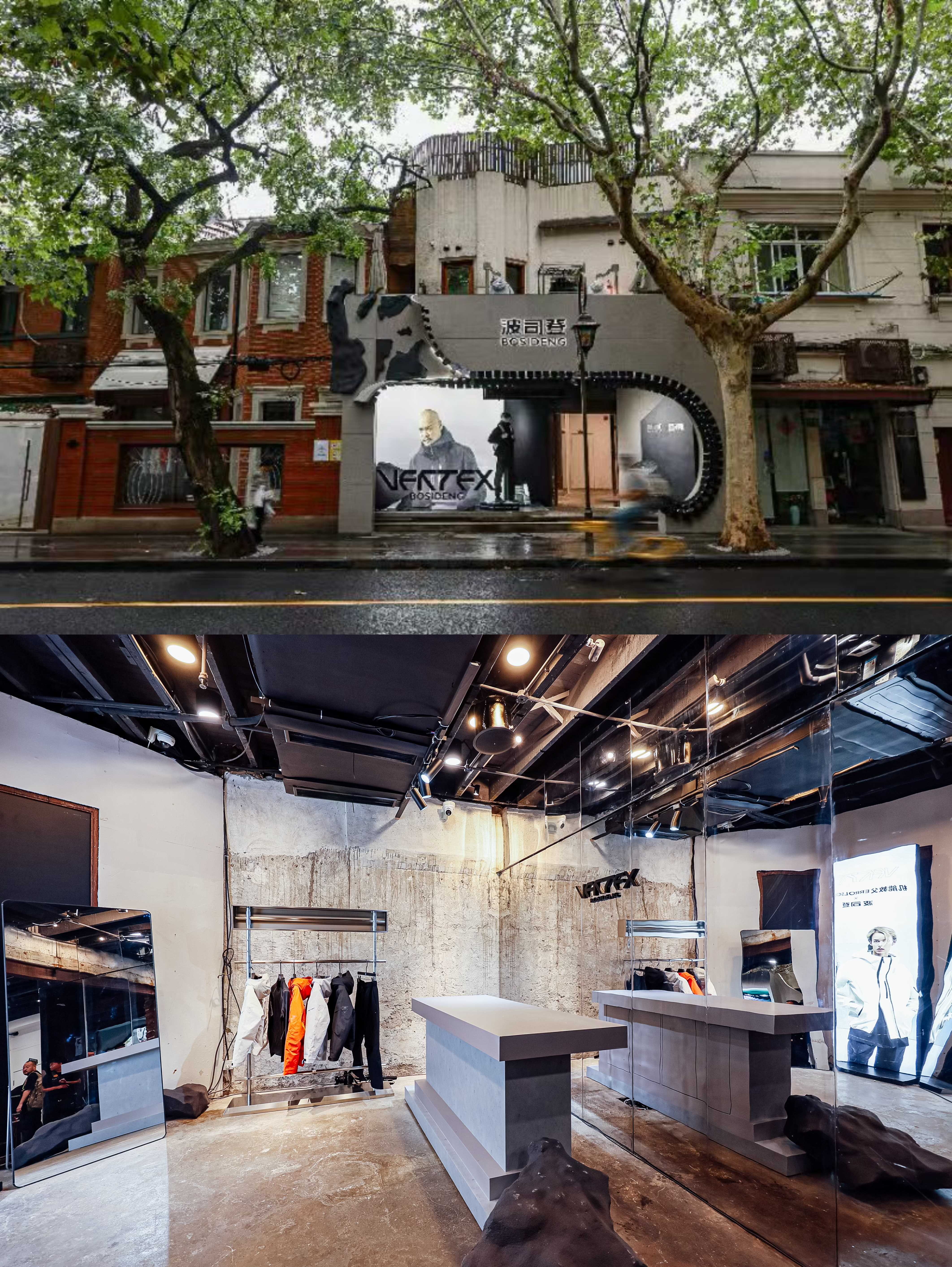 限时空间以富有科技感的未来主义为设计风格,在光影交错之中带来强烈的视觉冲击。VERTEX系列新品错落有致,互动区配置水枪供参观者在样衣上喷洒创作,让大众得以更直观地体验Gore-Tex防水面料的恒久力和保护性。而在彰显潮流科技属性的模拟试衣区,参观者可在此进行VERTEX系列服装虚拟试穿体验,一键变换穿搭,直观感受VERTEX系列服装带来的时尚赋能。每一处细节皆透露着波司登与Errolson Hugh对机能美学和功能服饰的深刻探索。