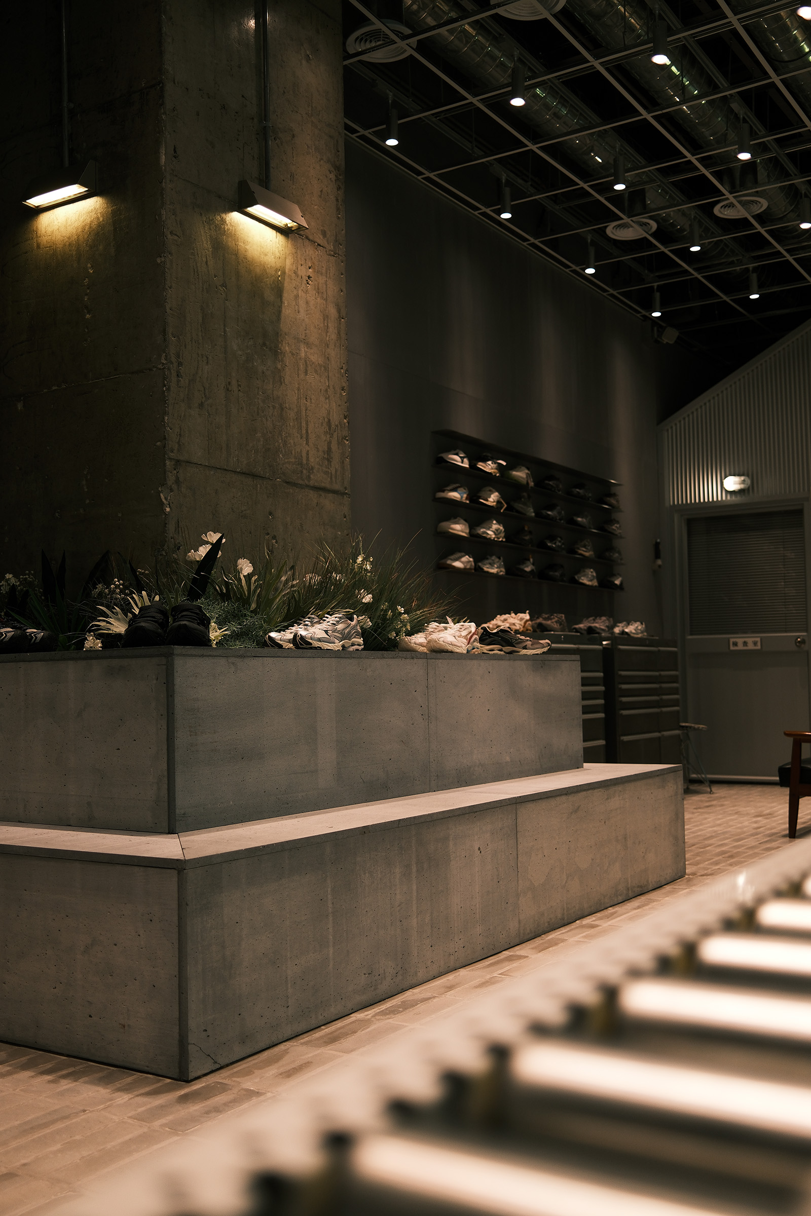 店铺设计超有料!以品牌经典工艺为灵感,灰色金属与混凝土碰撞出利落工业风,垂直纹理墙面搭配整齐鞋墙,随手拍都是氛围感大片。灯光和绿植悄悄融入,刚柔并济,逛店就像在沉浸式感受运动与生活的平衡感~