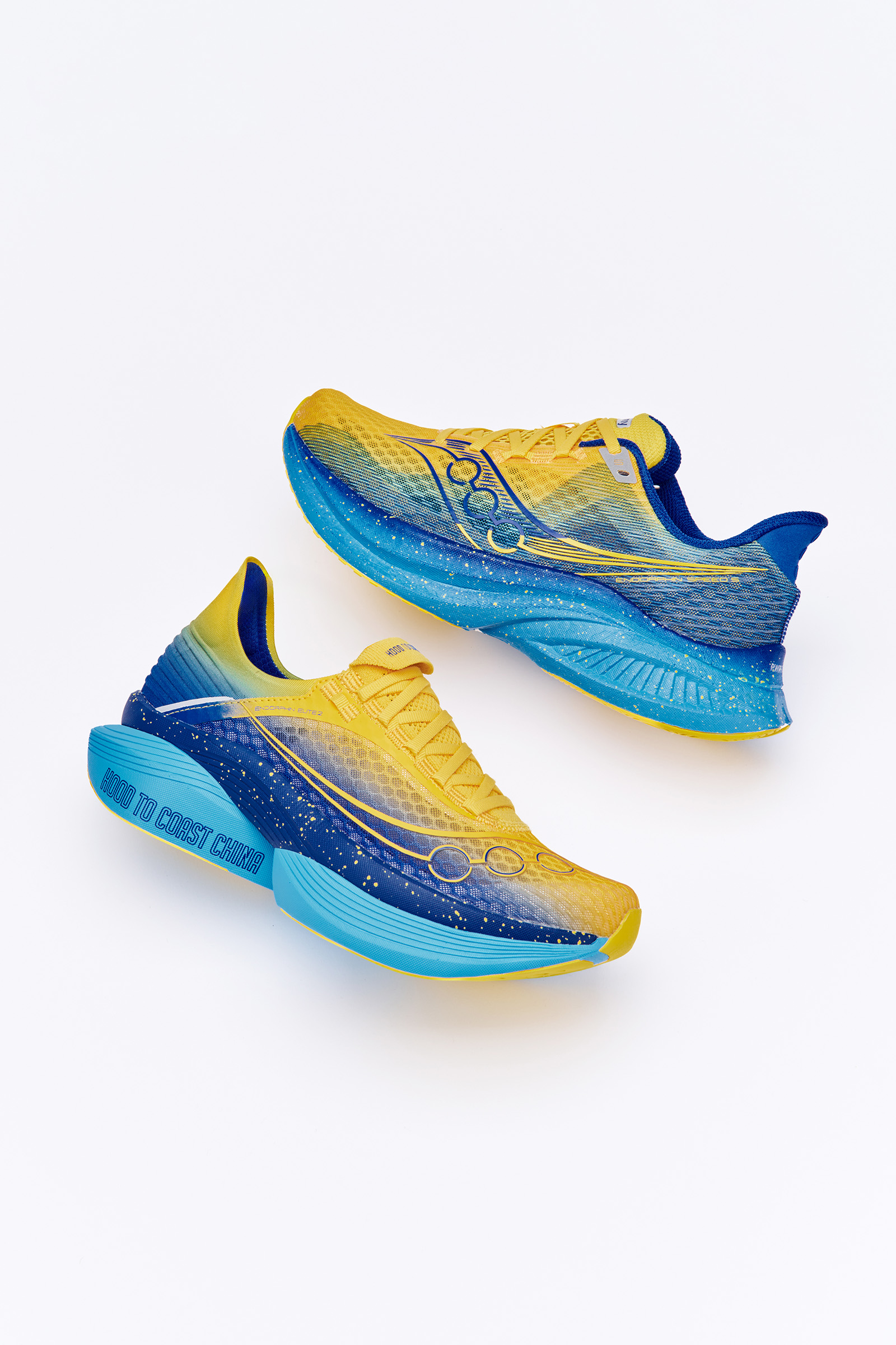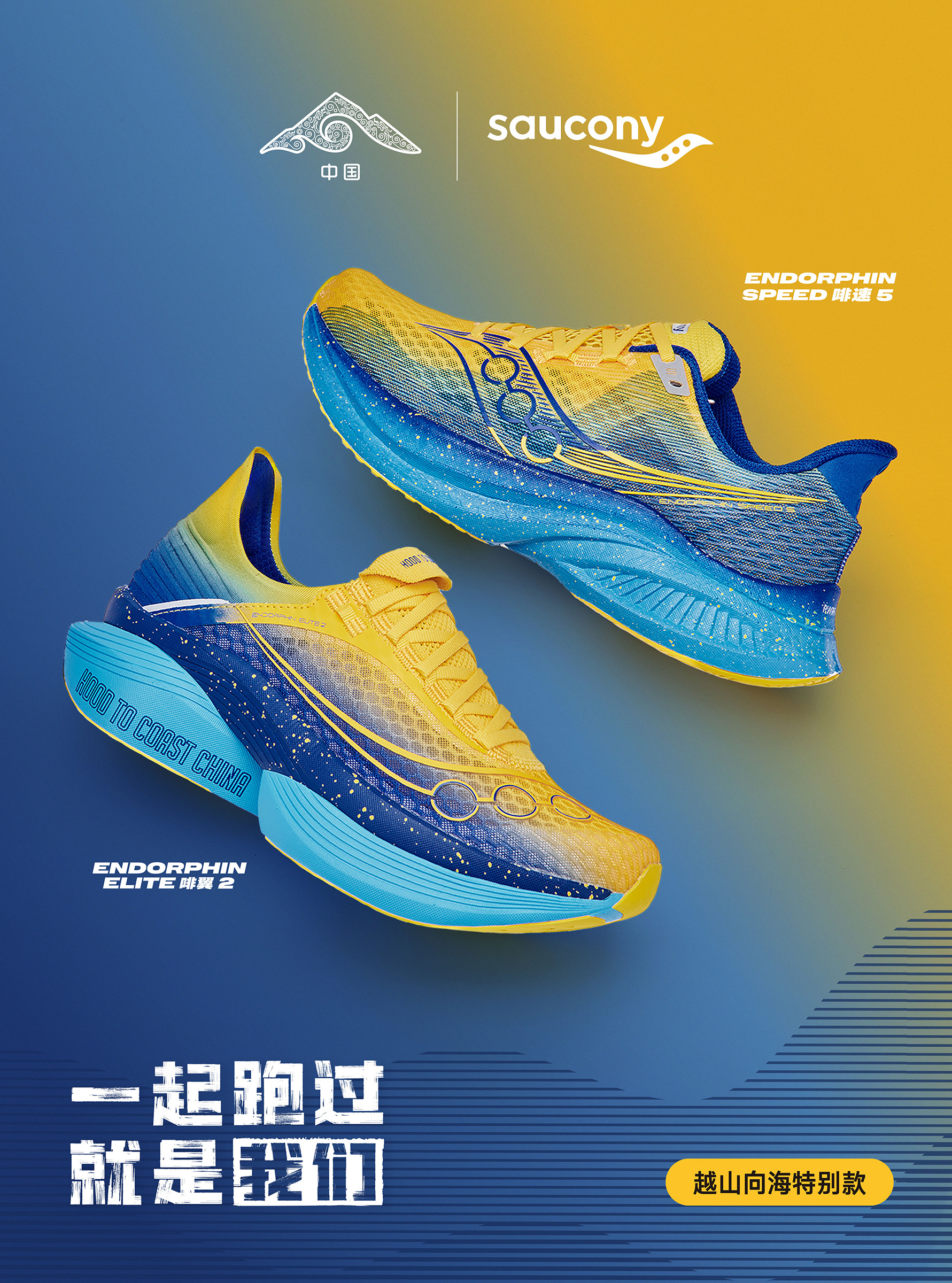 2025年,Saucony索康尼再度推出"越山向海"限定配色跑鞋,以 Endorphin Elite 啡翼 2 与 Endorphin S